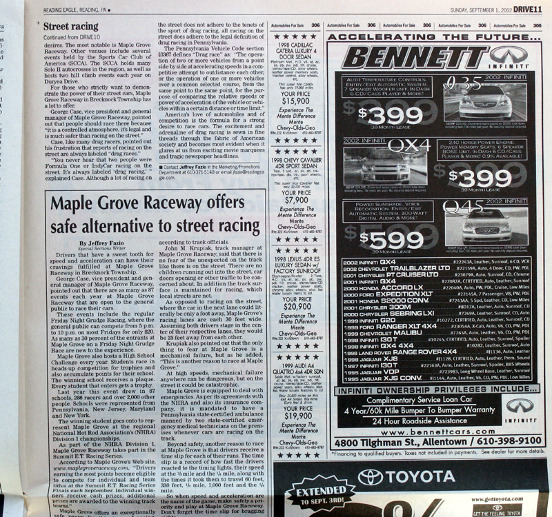 These articles were written for the Reading Eagle newspaper. While I worked for the newspaper, I wrote a monthly column for the DriveTime section, but on occasion I would also write feature articles for DriveTime. You can read the articles below.