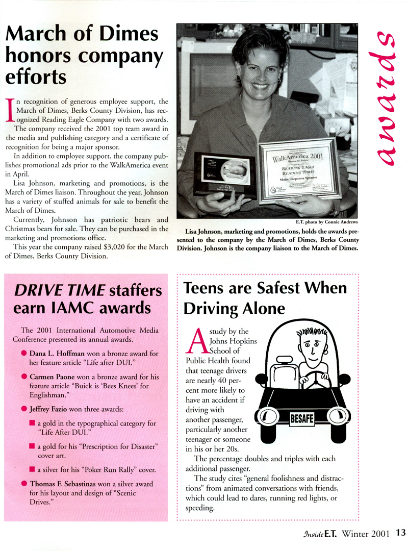 2001 International Automotive Media Awards (IAMA) the newsletter for Reading Eagle Company.